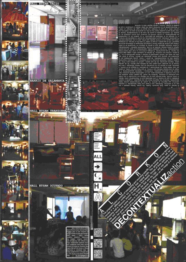 The proposed action consists of getting bored for six hours. One night, groups of speculators and professors must scour Madrid streets by car and pick up trash. The following day, the objects, pieces of furniture and paving collected will be arranged to create a lounge in the School’s building hall, where students will have an afternoong snack, they will chat and knit.