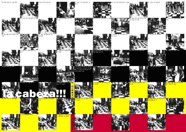 Eran una piña desde la workshopacción nocturna y había que romper su incondicional unidad que nos destrozaba el desarrollo de curso. Fue fácil: una ingenua y sencilla partida de ajedrez. El tiempo y los movimientos era lo único que permitía reconocer las jugadas de la partida. En un momento dado, blancos fueron cambiados por negros. En otro momento los jugadores perdieron la voz y habían de comunicarse por señas. Finalmente las piezas fueron sustituidas por ellos mismos. Perdió el quipo en el que uno de sus miembros desoyó las instrucciones de su grupo y actuó por su cuenta. Pequeña acción que se convirtió por muchos motivos en una metáfora de la cotidianidad.