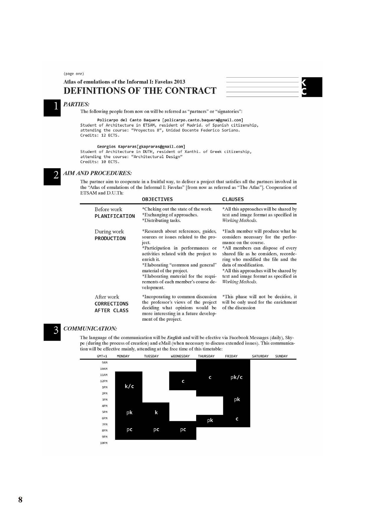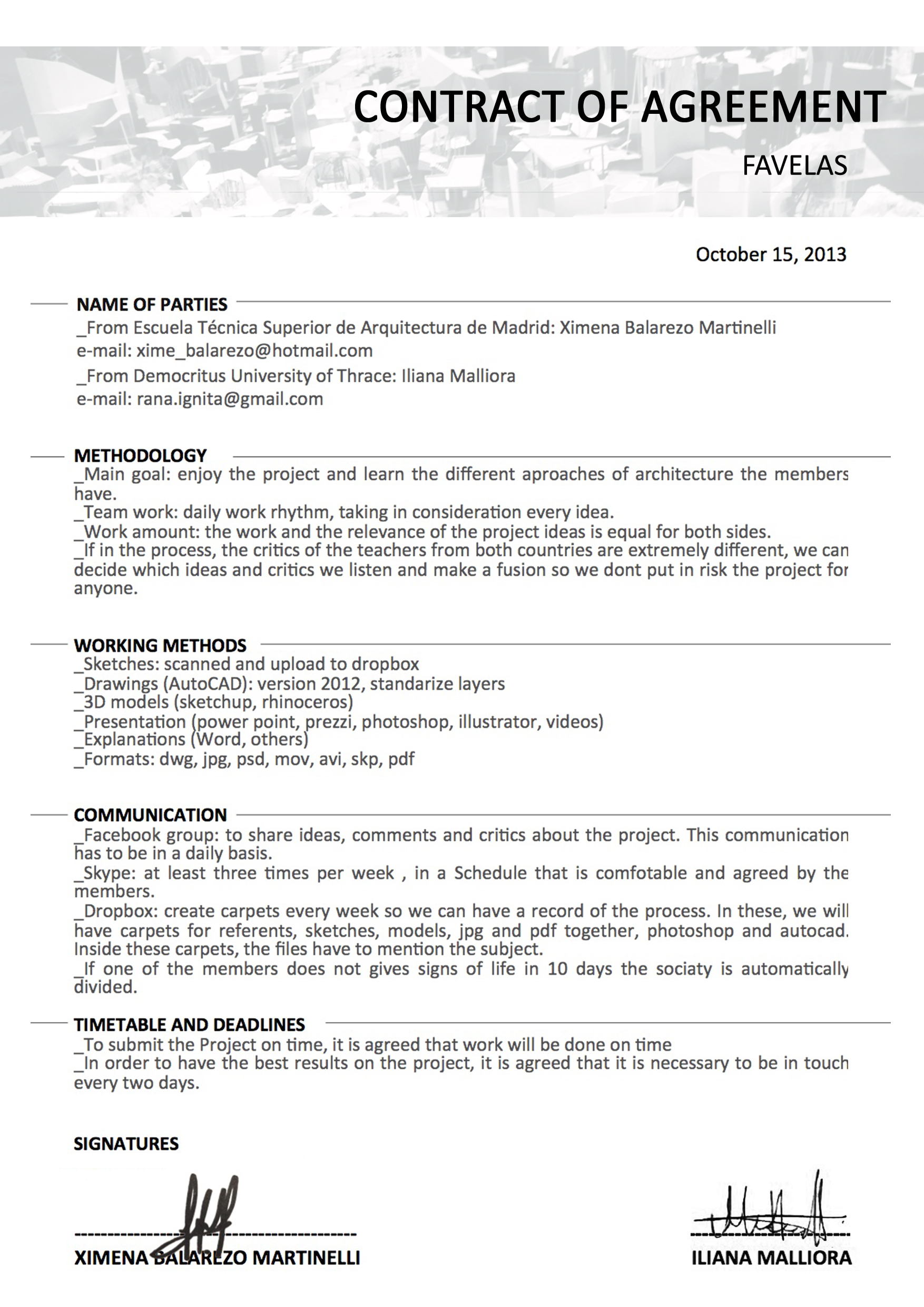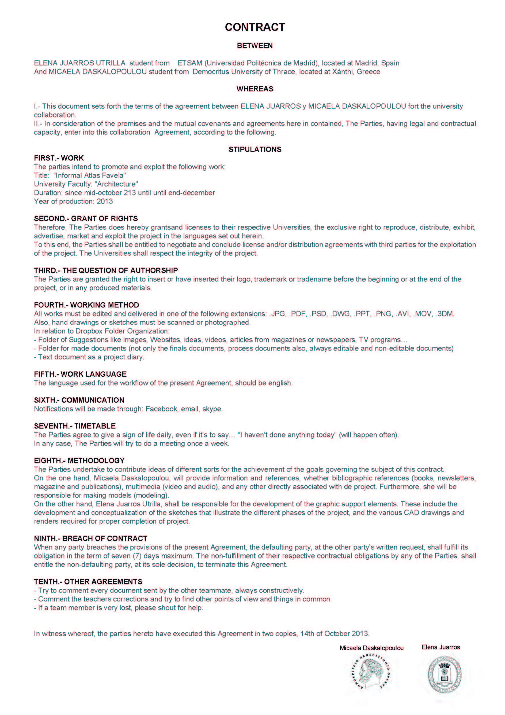 The contract establishes the working plan, agreed by both parts. It